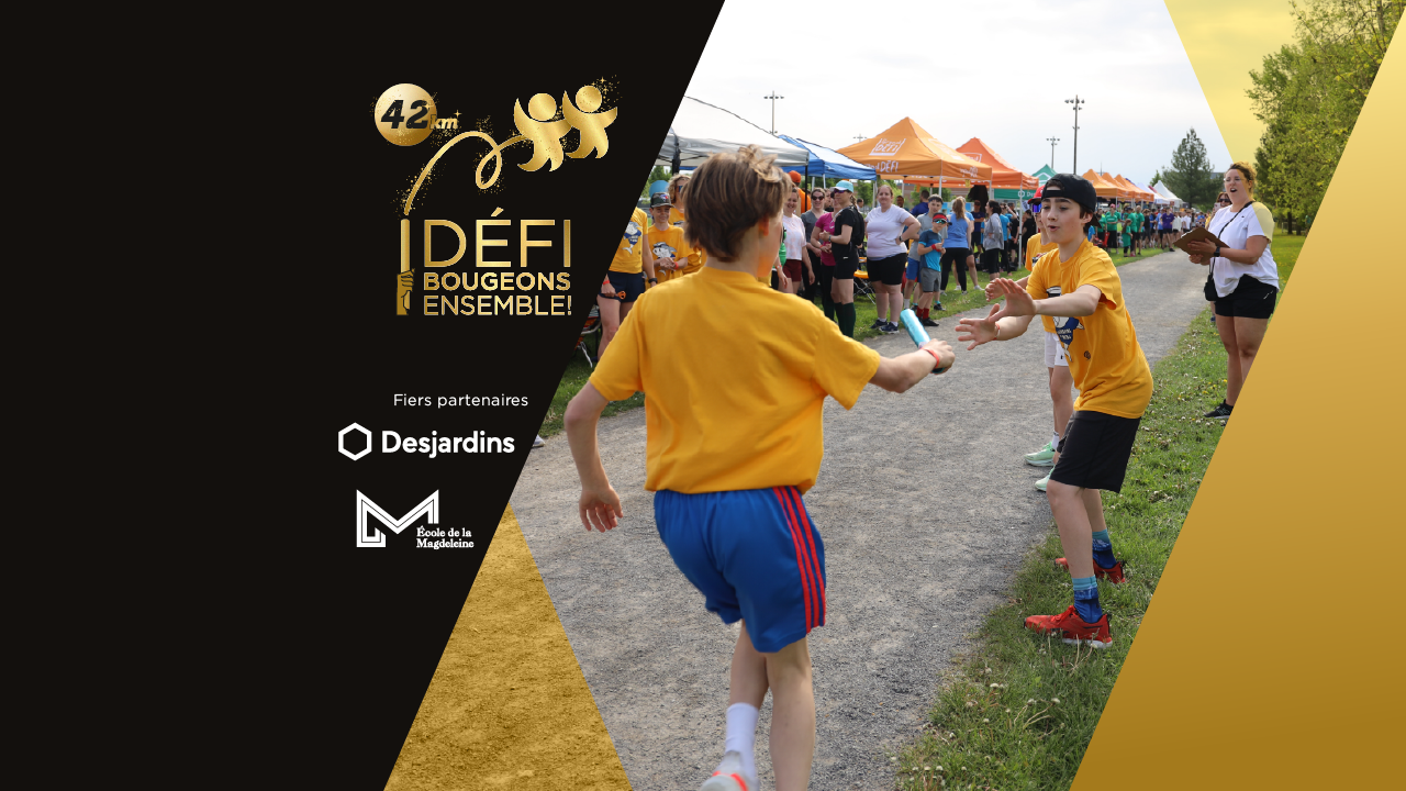 Le CSSDGS invite ses élèves, les membres du personnel et leurs familles à la 10e édition du Défi Bougeons ensemble! qui aura lieu le samedi 23 mai 2026 au terrain de football/soccer synthétique de l’école secondaire de la Magdeleine à La Prairie où ils pourront vivre une expérience unique et rassembleuse d’une course à relais de 42 km, soit la distance équivalente à un marathon!